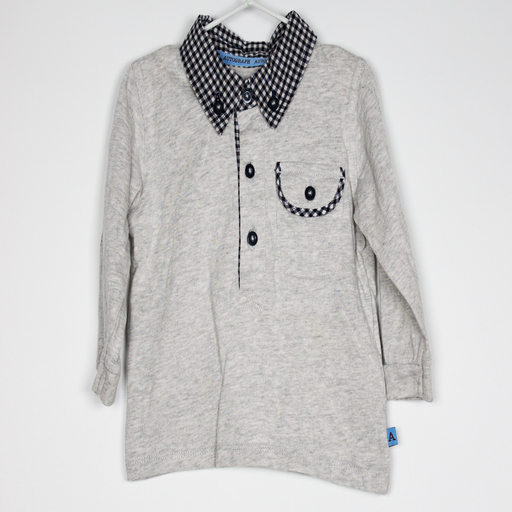 M&SDetails Description: Gingham detail long sleeve polo shirt. Colour: Black, grey. Material: Cotton. Size on Label 6-9M Condition New without tag: ne...