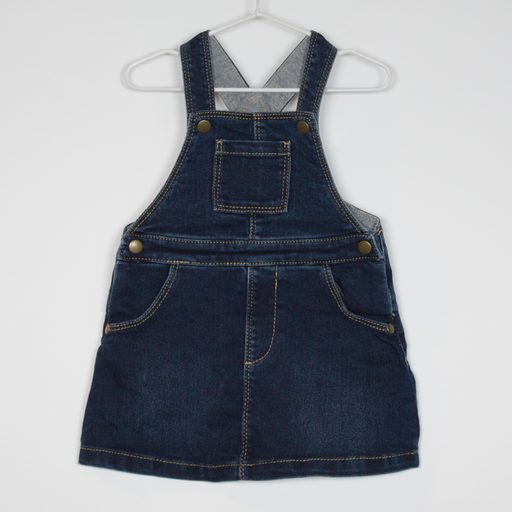 M&SDetails Description: Dungaree dress with two poppers to each strap and pockets. Colour: Navy. Material: Cotton, polyester, elastane. Size on Label...