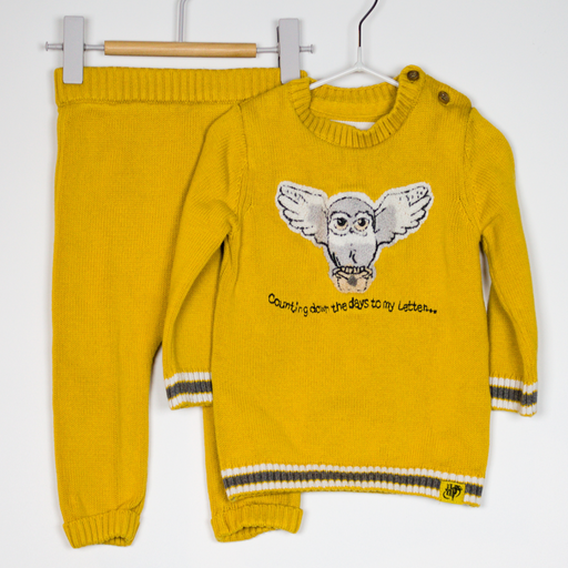 M&SDetails Description: Harry Potter cotton knit set with fleece hedwig applique. Colour: Mustard yellow. Material: Cotton. Size on Label 6-9M Conditi...