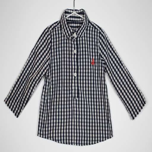M&SDetails Description: Pull on shirt, 3 buttons and no cuffs, sailboat emblem. Colour: Navy, white. Material: Cotton. Size on Label 6-9M Condition Gr...