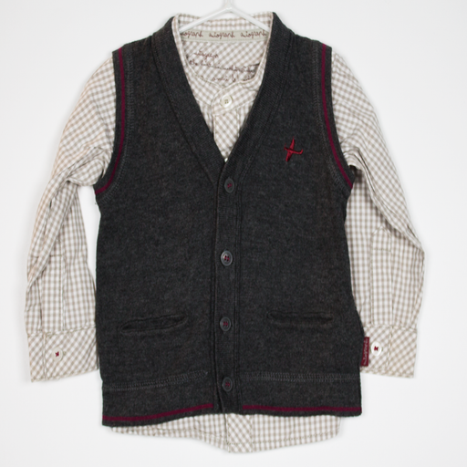 M&SDetails Description: Check g'dad collar button up shirt with fine cotton knit button up waistcoat. Embroidered aeroplane emblem. Colour: Grey, whit...
