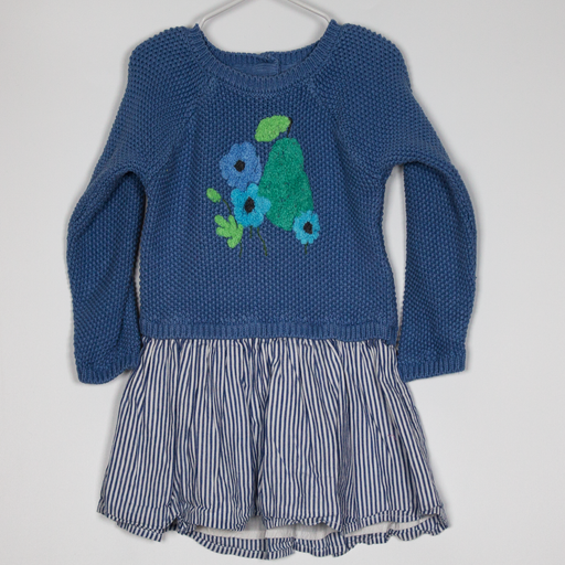 M&SDetails Description: Cotton knit body with fleece pear and flower applique with light lined striped skirt. Colour: Blue, white, green. Material: Co...