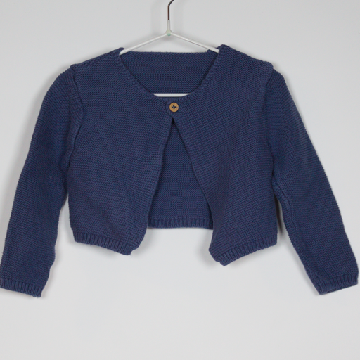 MothercareDetailsDescription: Cotton knit cropped cardigan with one button to close. Colour: Navy. Material: Cotton. Size on Label 6-9M Condition Good Condit...