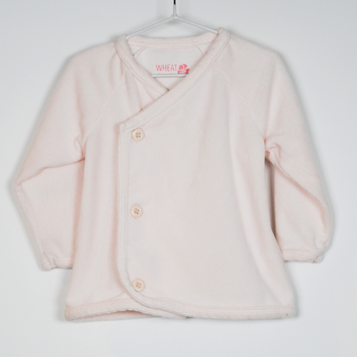 WheatDetails Description: Ribbed look velour fabric cross over cardigan. Colour: Pink. Material: Cotton, polyester. Size on Label 9M Condition Great Con...