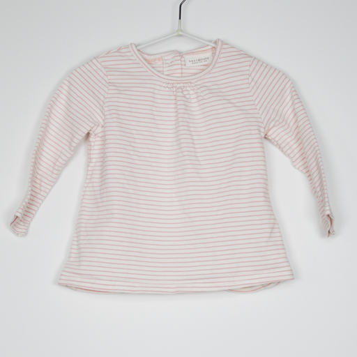 HeatonsDetails Description: Cotton striped long sleeve top with stitching detail to cuffs. Colour: White, pink. Material: Cotton. Size on Label 6-9M Condi...