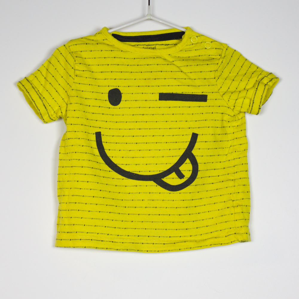 Description: Cotton t-shirt, 2 poppers to side collar, turn ups sleeves.