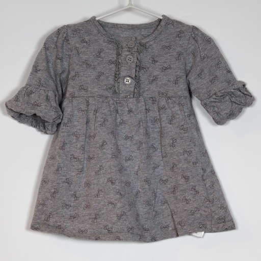 MothercareDetails Description: Bow print long line top with fluted balloon sleeves and button detail. Colour: Grey. Material: Cotton. Size on Label 3-6M Cond...