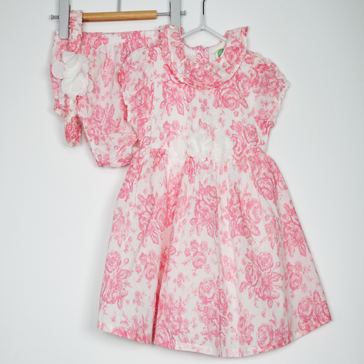 Little MeDetails Description: Lined dress with double collar and matching headband and nappy cover. Colour: White, pink. Material: Cotton. Size on Label 6M ...
