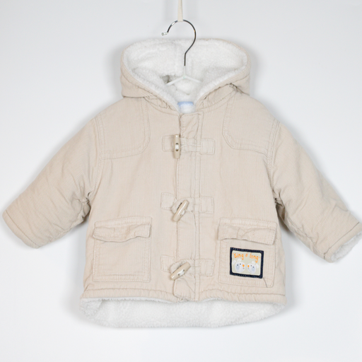 CherokeeDetails Description: Zip close fleece lined cord jacket with toggles and hood. Colour: Cream. Material: Cotton, polyester, acrylic. Size on Label 6...