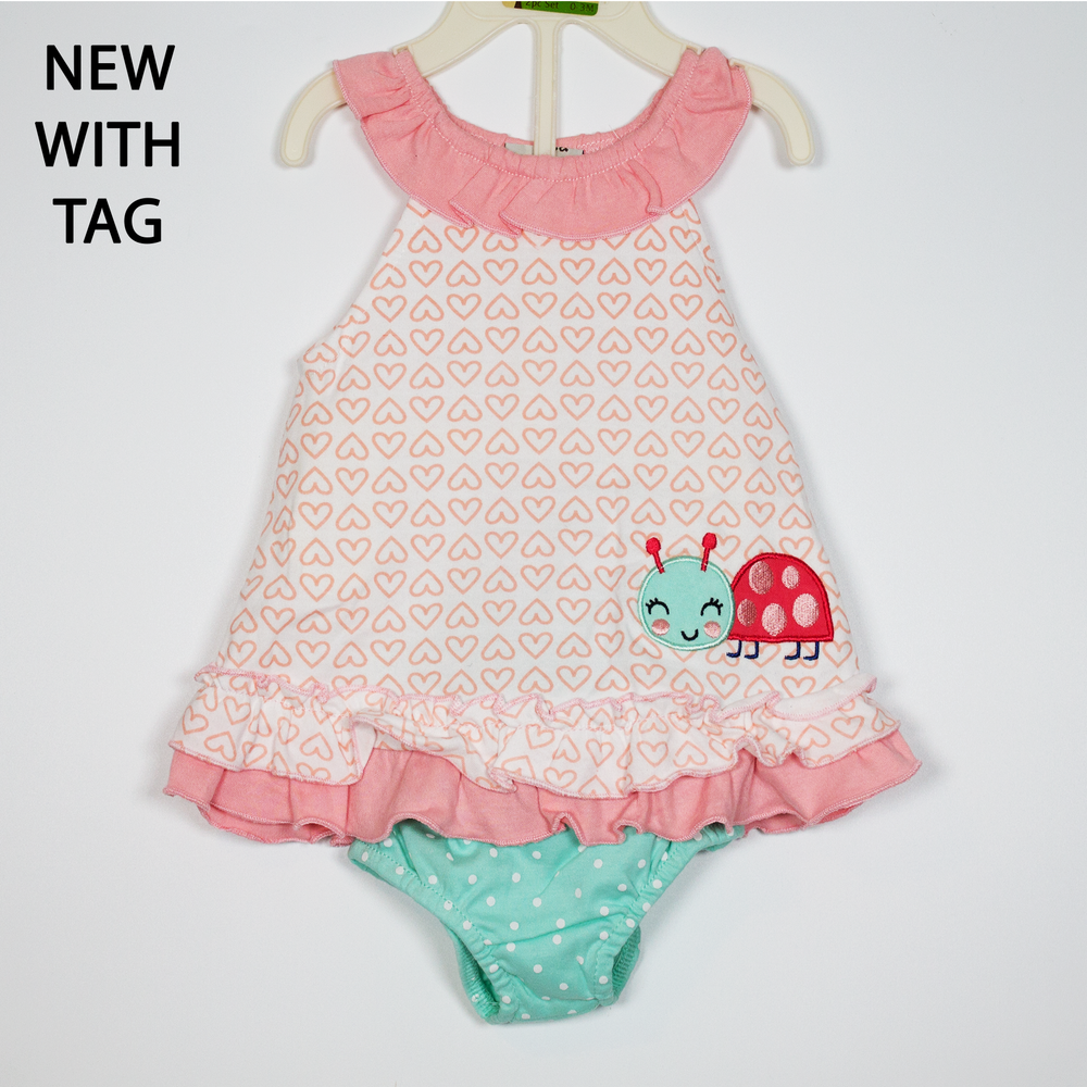 Description: Sweet summer top and matching nappy cover, ladybird applique.