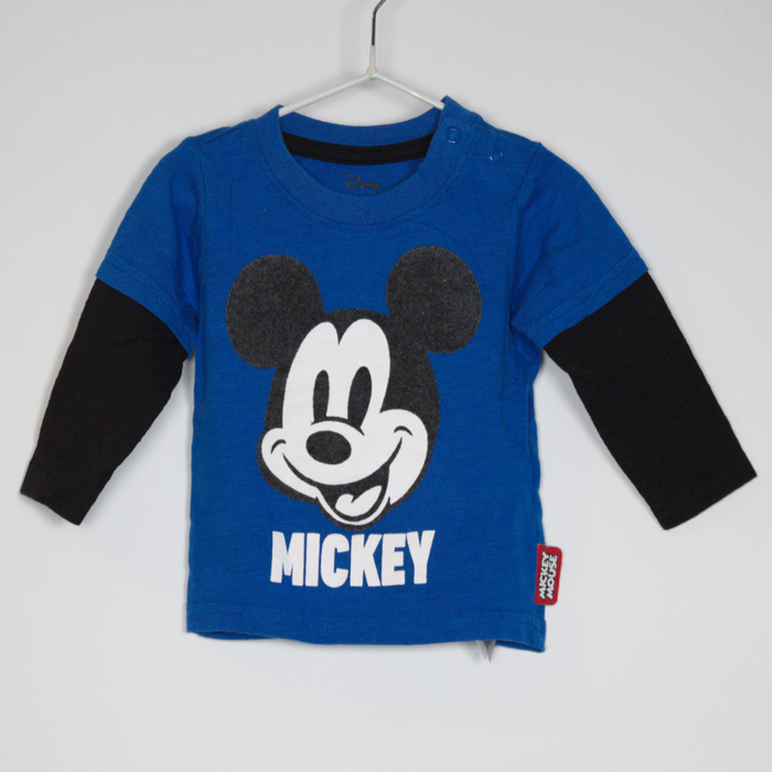 Description: Long sleeve top with faux t-shirt sleeves, flocked Mickey Mouse detail.