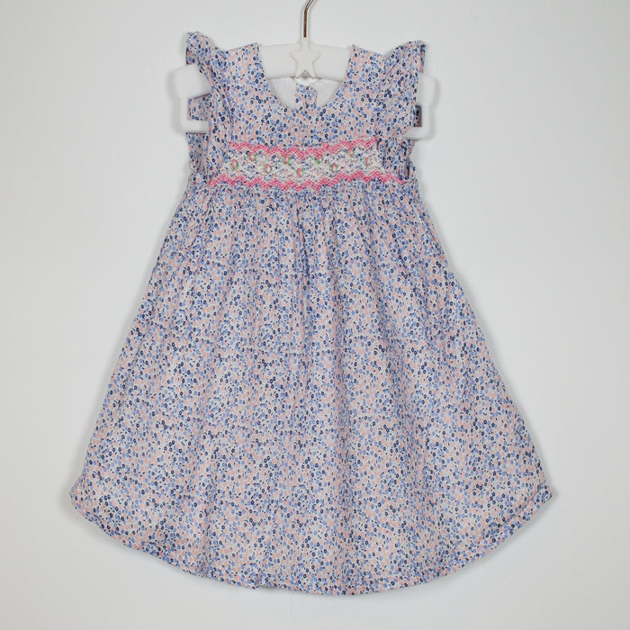 Sweet tiny flower print throughout, smocking to chest and matching nappy cover by Mothercare