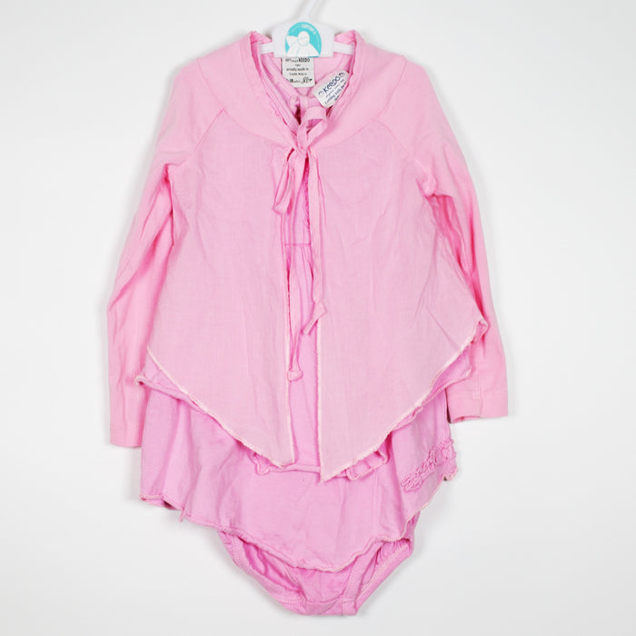 3 piece set with layered dress, sweet lightweight cardigan and ruffle bum nappy cover by Keedo