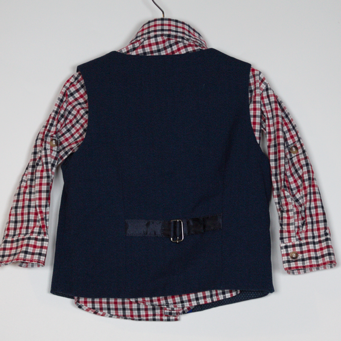 Material: Shirt: Cotton. Waistcoat: Polyester, viscose, cotton.