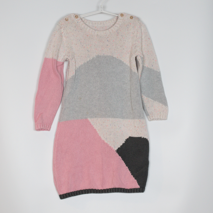 Description: Cotton knit jumper dress, 2 buttons to each side collar.