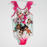 Description: LOL print swimming constume with ruffles to straps.