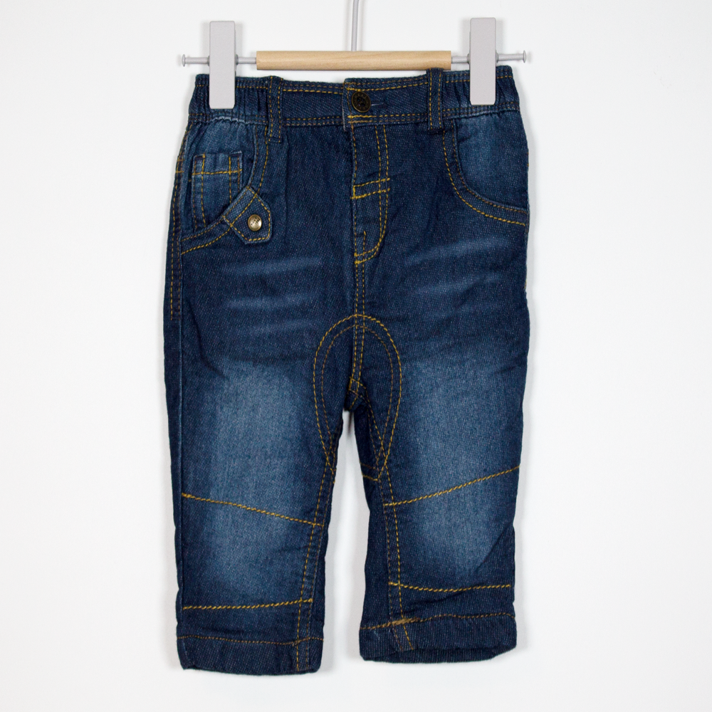 Description: Stitching detail warm lined jeans with elastic waist band.