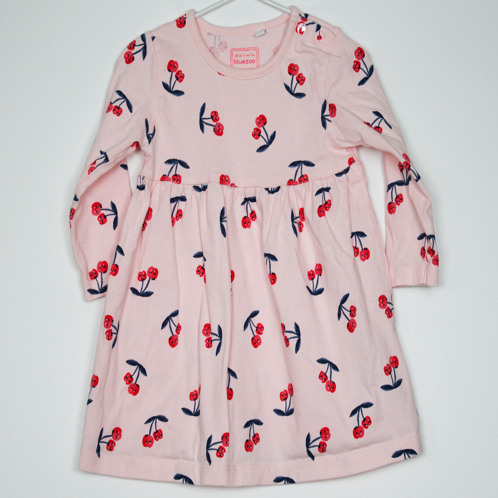 Description: Nice quality cotton cherry print long sleeve dress.