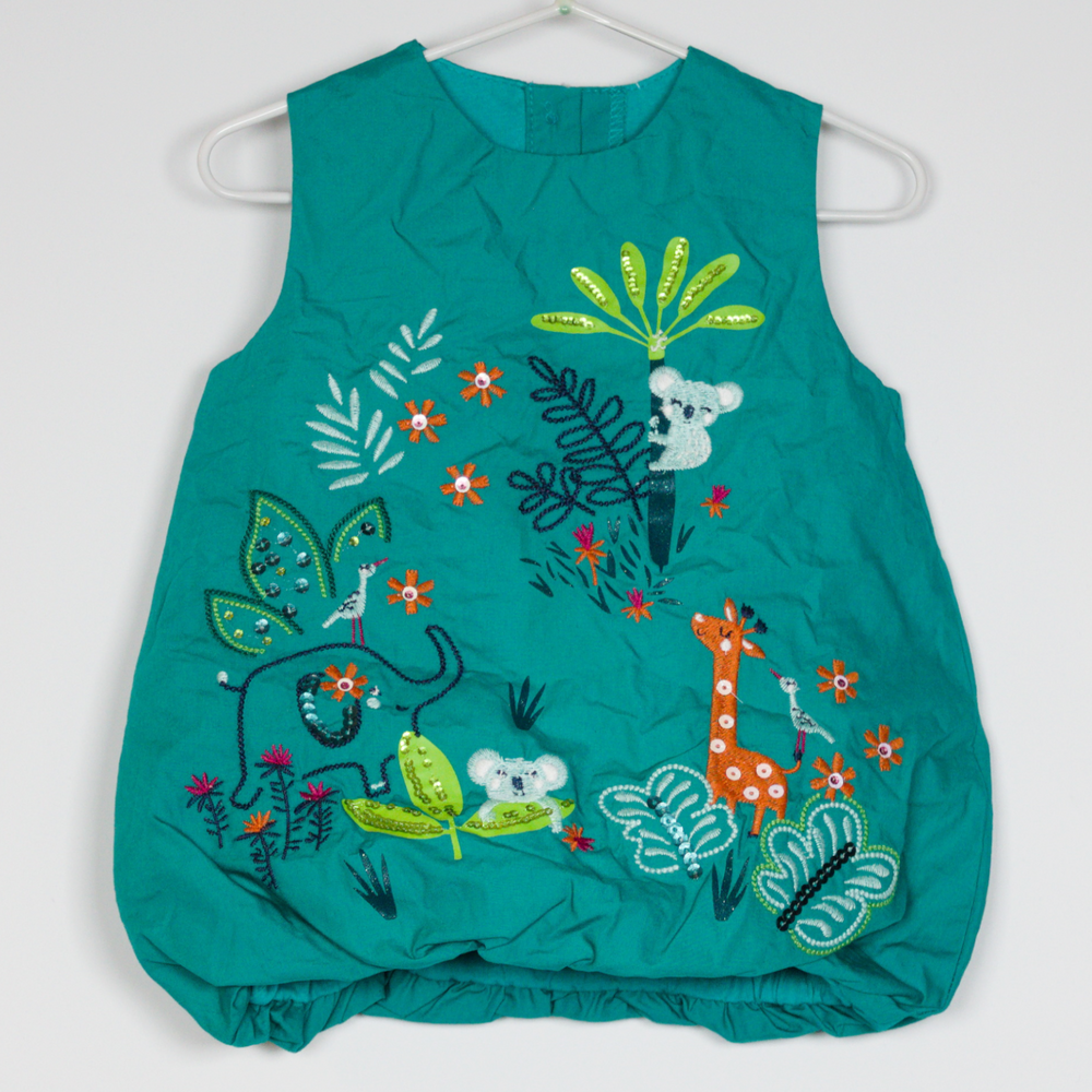 Description: Lined bubble hem dress, embroidered, print an sequin detail.