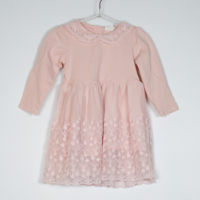 Description: Embroidered mesh over layer to skirt, peter pan collar, 3 poppers to back.Colour: Pink.