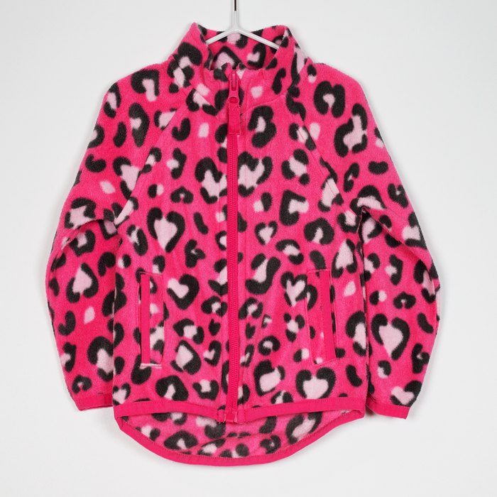 Description: Pink leopard print zip up fleece.