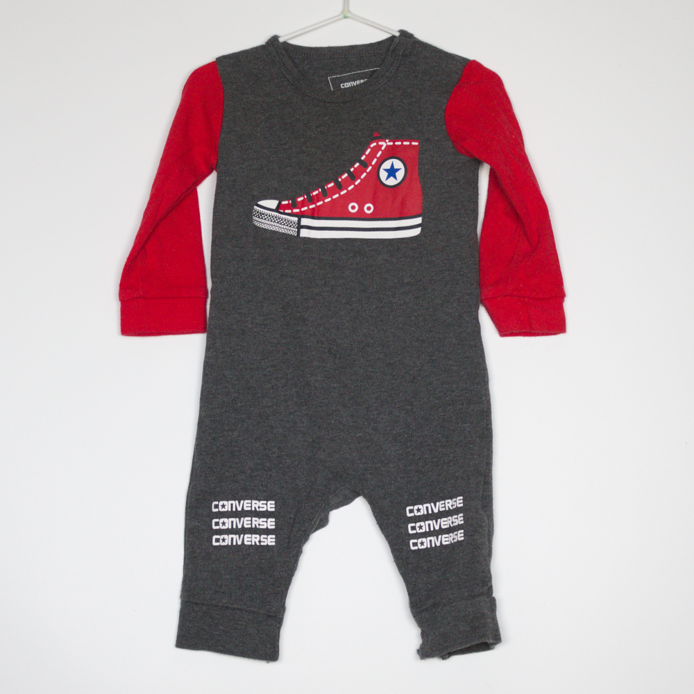 Description: Footless onesie with popper to side collar and poppers to inner legs.