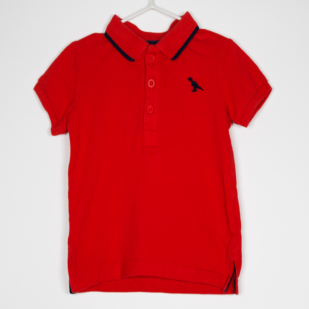Description: Embroidered dinosaur short sleeve polo t-shirt.