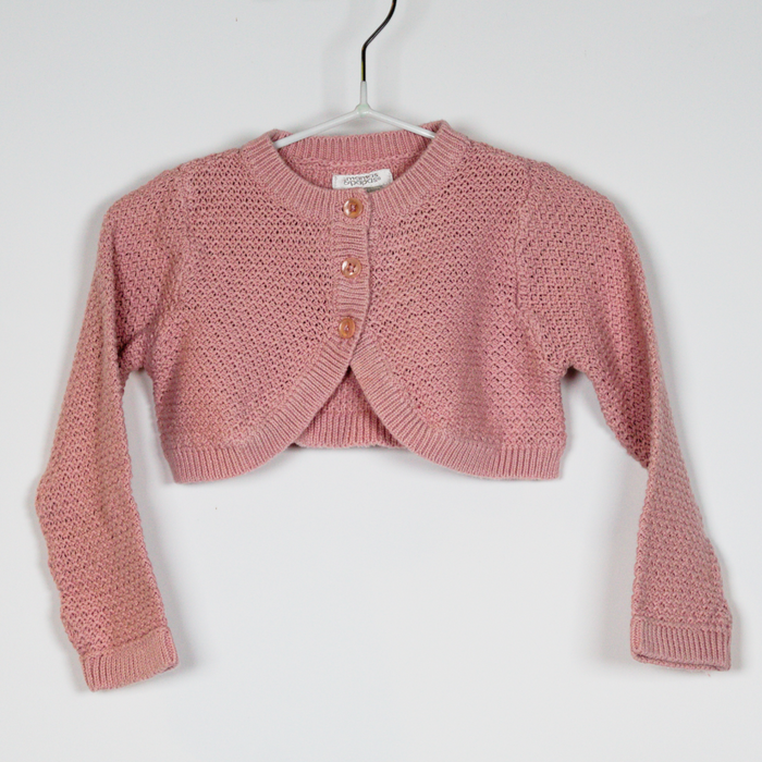 Description: Cotton knit bolero cardigan with 3 buttons to close.