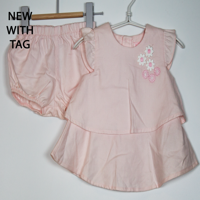 Description: 2 layer top with embroidery 3D flower detail and bloomer shorts.