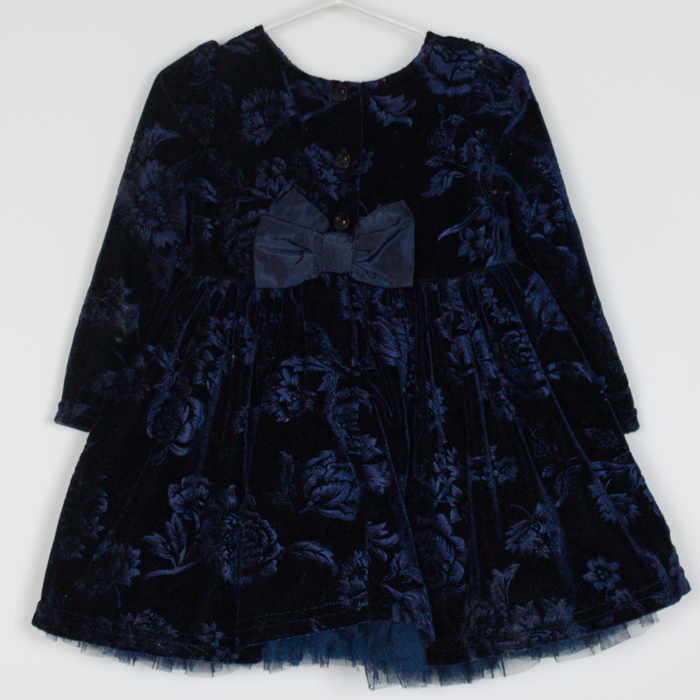 Description: Embossed velvet fabric occassion dress, double lined skirt for volume.