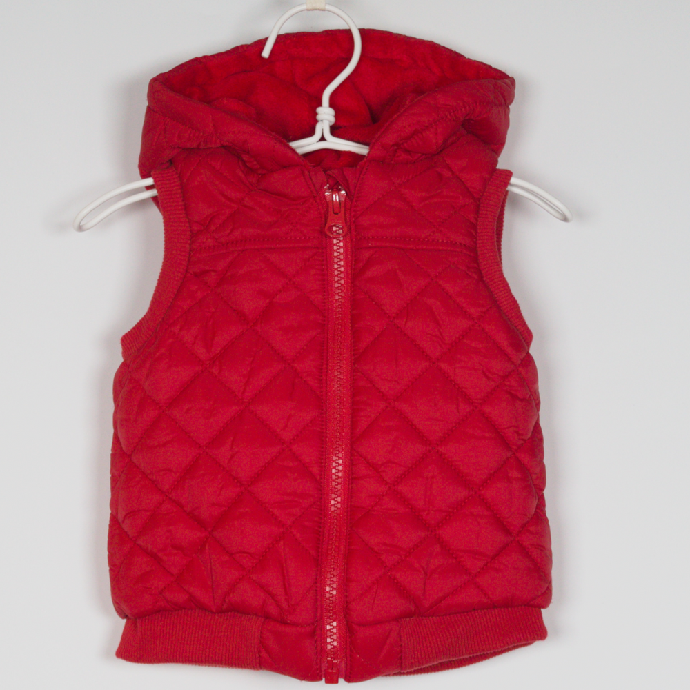 Description: Quilted effect body waremr, padded with fleece inner, zup to close and hood.
