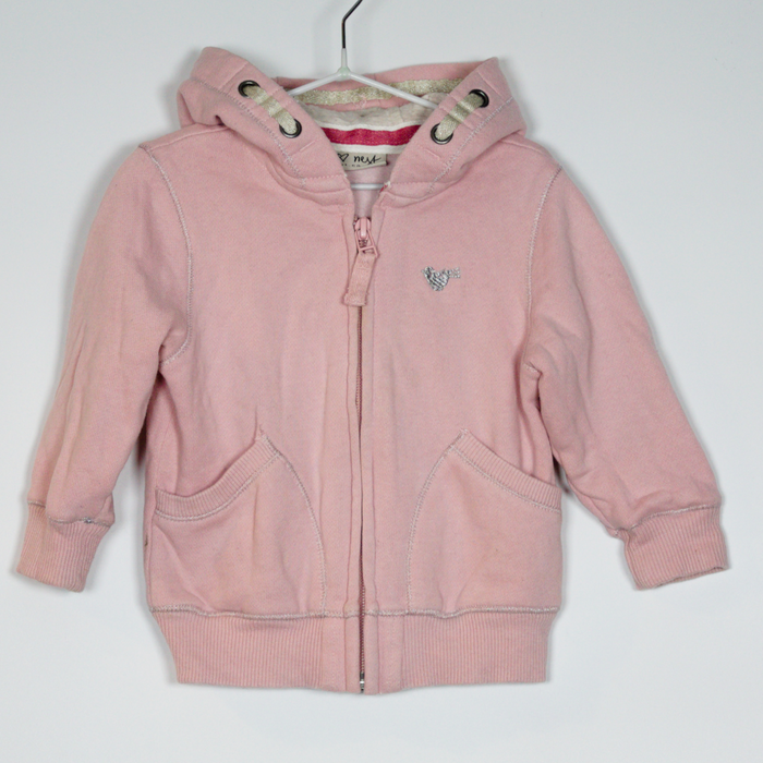 Description: Nice quality hoodie with ribbed cuffs and hem, pockets, silver embroidered bird motif, zip to close, contrasting lining in hood.