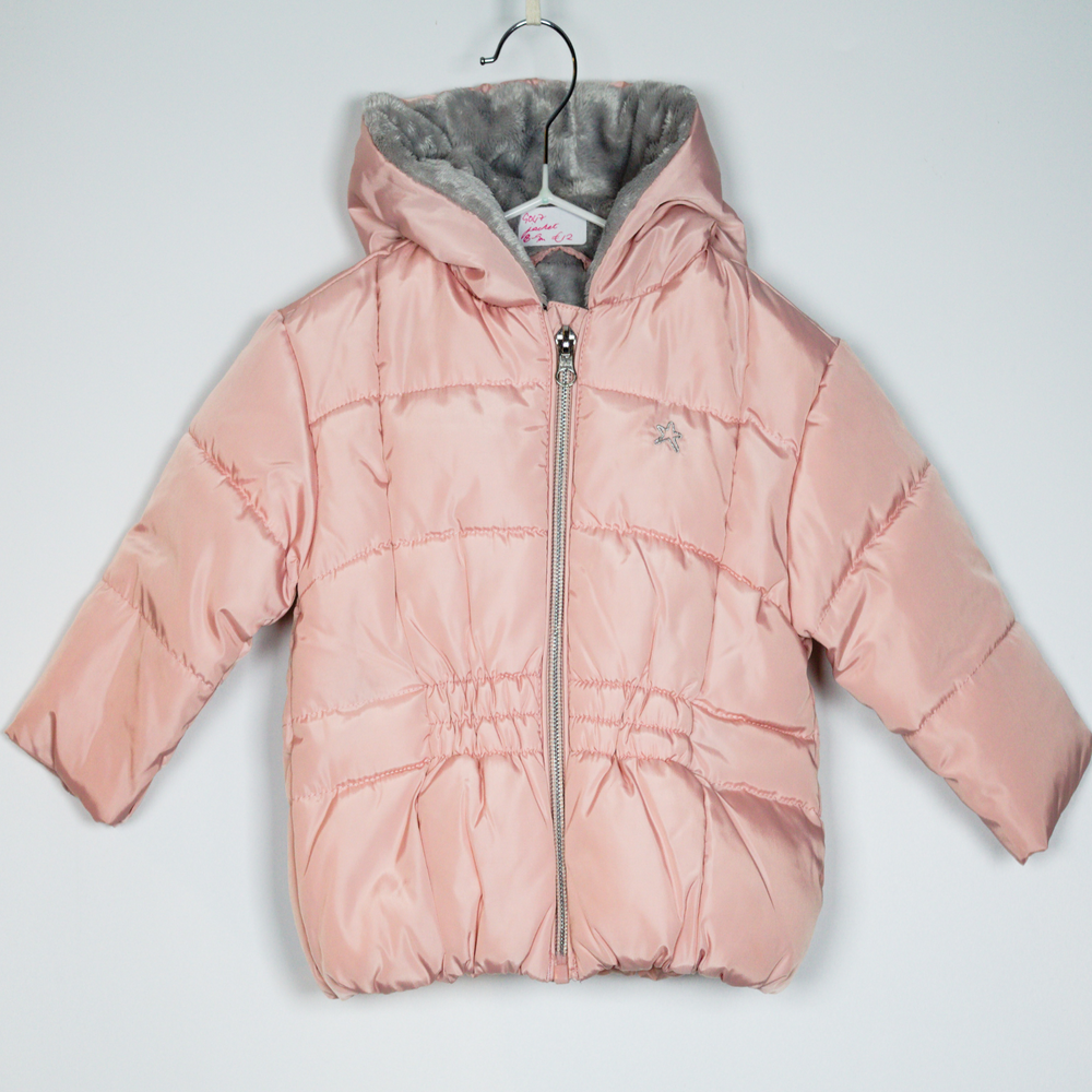 Description: Soft fleece, zip up,lined padded jacket with silver embroidered star motif.