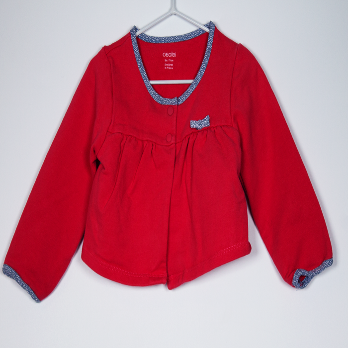 Description: Cropped cardigan, two poppers to close, polkadot trim and bow detail.
